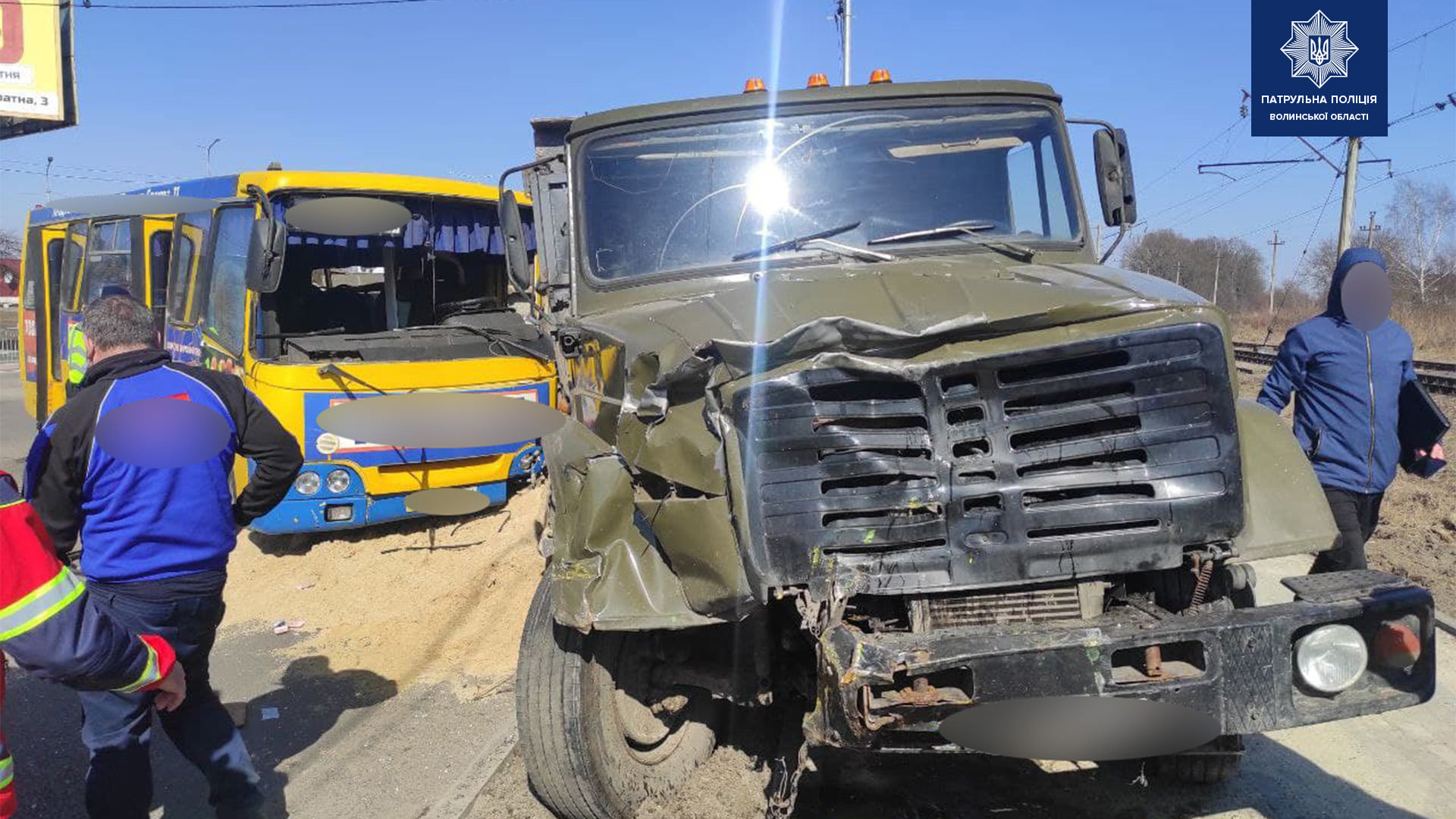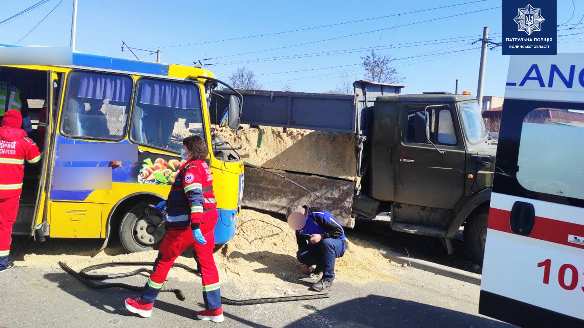 Нагадаємо, автопригода трапилася сьогодні о 12:30 по вулиці Ківерцівській у Луцьку. Зіткнулися маршрутне таксі Богдан та вантажівка ЗІЛ з причіпом. Встановили, що в маршрутному транспортному засобі перебували 15 пасажирів. Також 7 осіб відвезли каретами екстреної допомоги у медичний заклад.