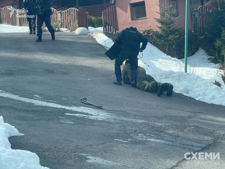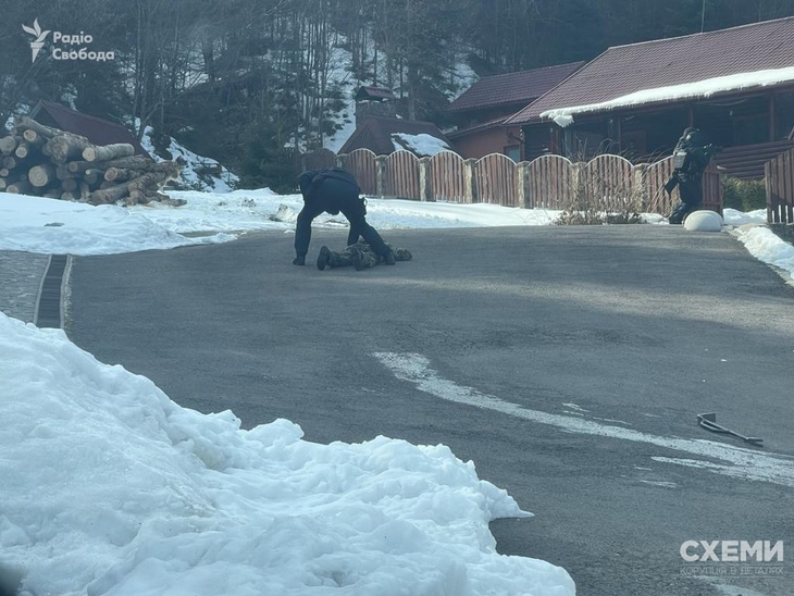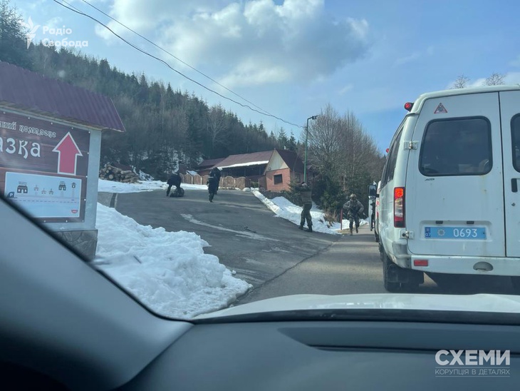 Як встановили «Схеми», слідчі дії відбулися в рамках кримінального провадження, яке розслідує Національна поліція, а саме – її обласне управління на Закарпатті. На фото видно працівників Департаменту стратегічних розслідувань Нацполу, які здійснювали оперативний супровід під час обшуків за участю спецпідрозділу «Корд».