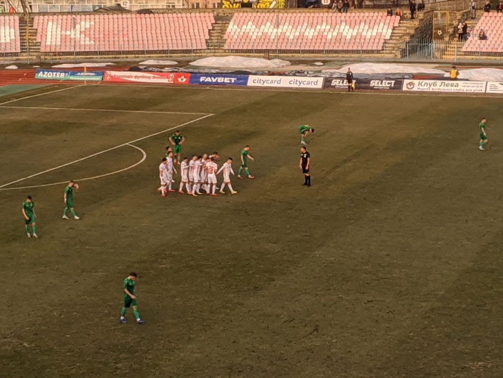 «Хрестоносці» явно переважали своїх суперників. Але забили тільки ще раз. На другій доданій до першого тайму хвилині Артур Рябов «вистрелив» з-за меж штрафного майданчика, і воротар тернополян не зумів відбити цей удар.