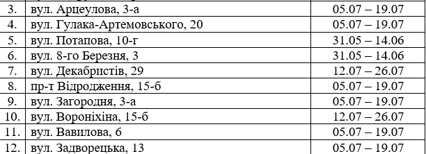 Так, з 5 липня до 1 серпня не буде гарячої води за такими адресами: