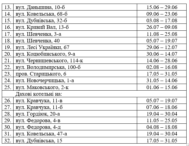 Із 25 травня до 14 червня гарячу воду вимкнуть за такими адресами: