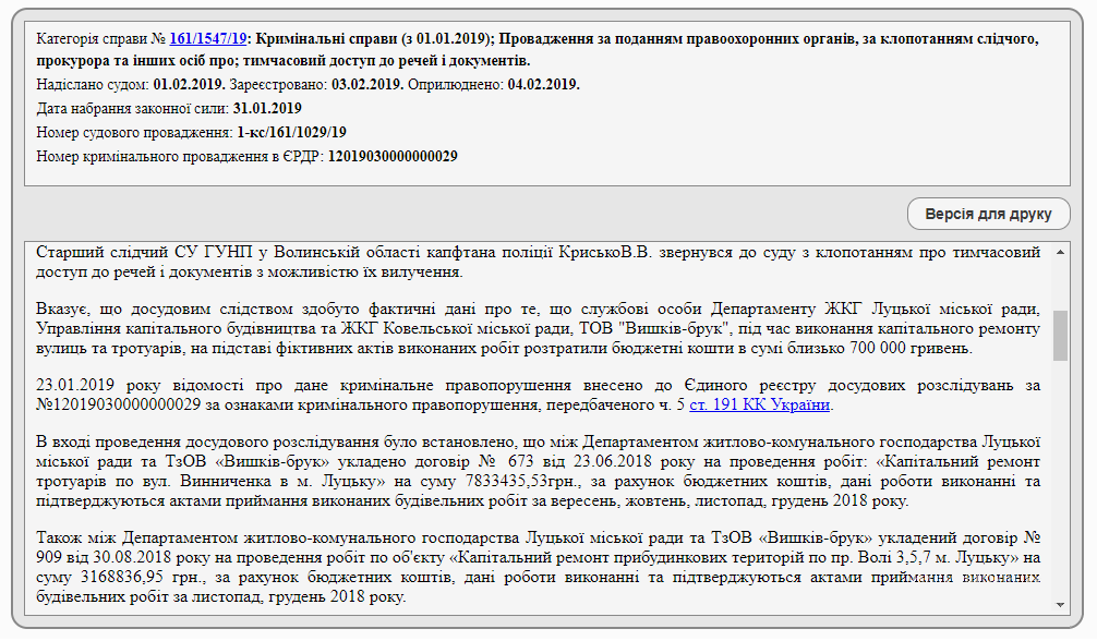 У згаданому кримінальному провадженні фігурують розпорядники бюджетних коштів, які отримали субвенцію, тому цілком можна припусти, що вони знали про існування кримінальної справи і, незважаючи на це, продовжили укладати договори з сумнівною фірмою зв’язаною з людьми Палиці.
