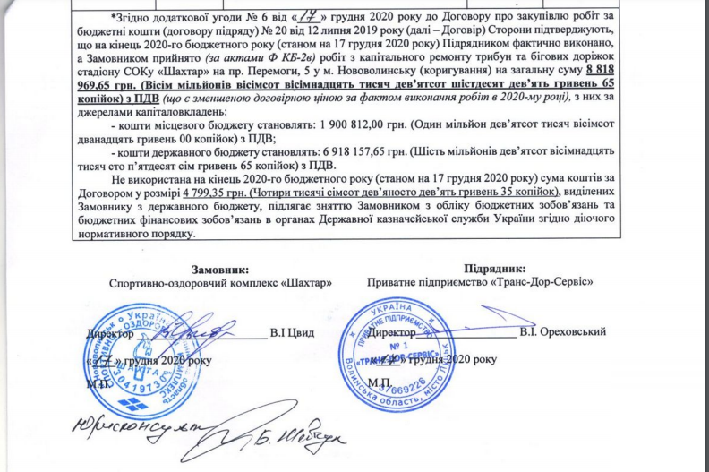 То скільки фактично коштує капремонт трибун та бігових доріжок стадіону «Шахтар» у Нововолинську?