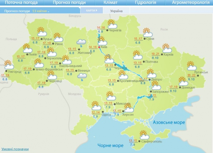 Діденко зазначає, що ввечері 14 квітня із заходу Європи до західних областей почне підповзати мокрий сніг. У Києві у вівторок буде хмарно, а температура повітря коливатиметься в межах +12+14 градусів.