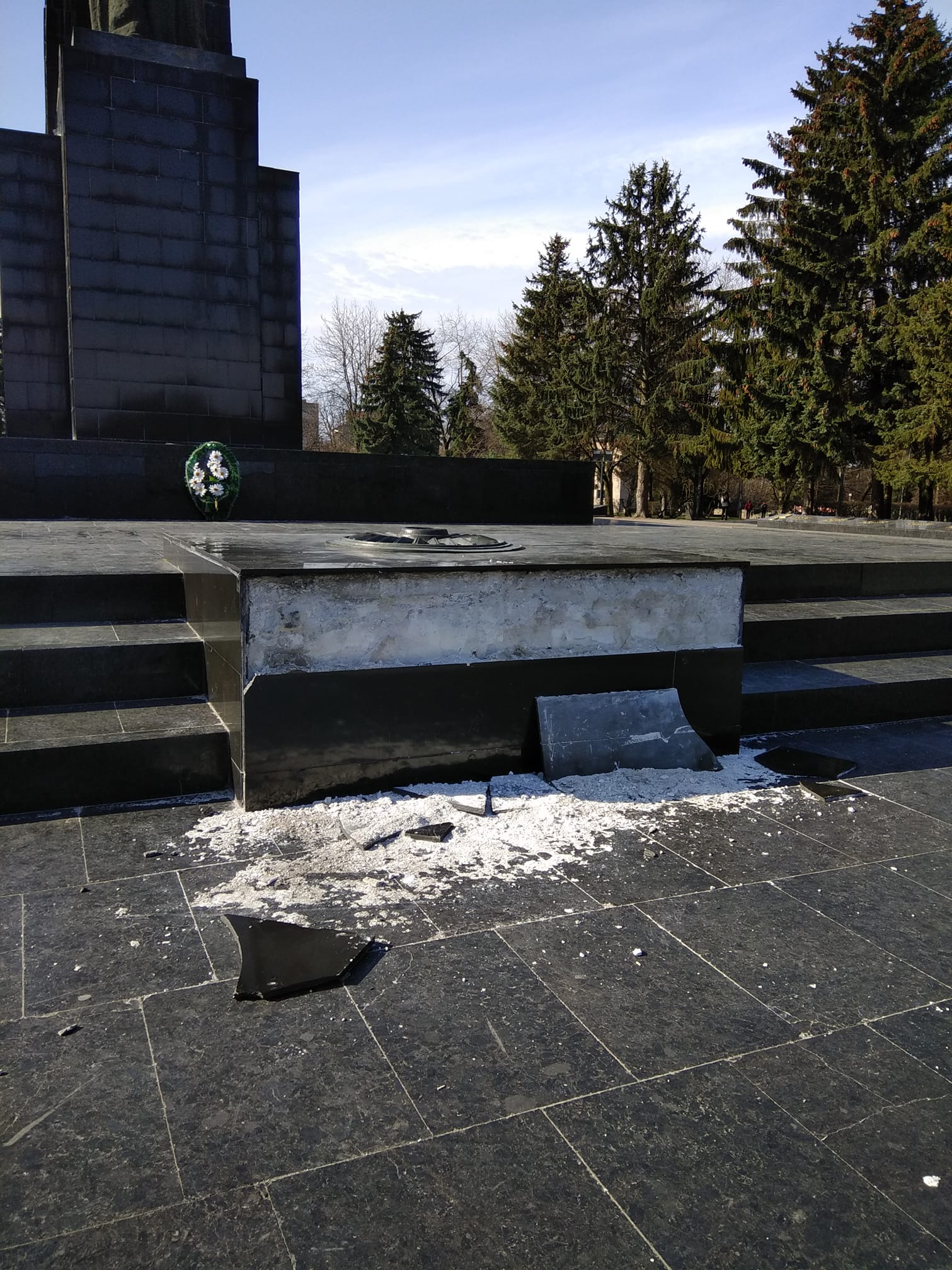У Луцьку біля 40-метрового обеліска, що на меморіальному комплексі «Вічна слава», відвалилася величезна плита.
