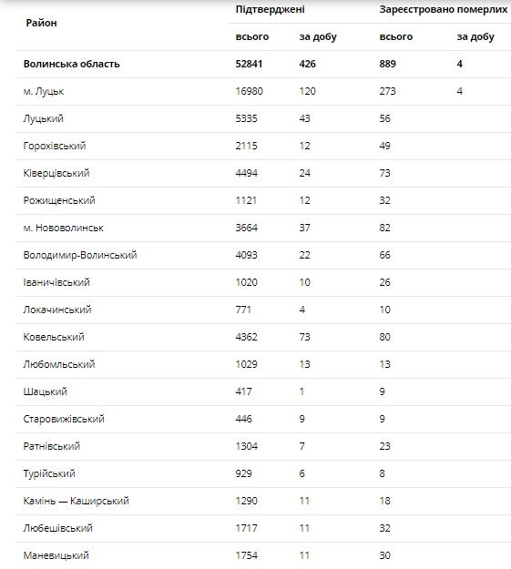 Минулої доби на Волині зареєстровано 426 нових підтверджених випадків коронавірусної хвороби COVID-19 (з них дітей – 18, медпрацівників — 11). Одужало за добу – 275 осіб, летальних випадків – 4.
