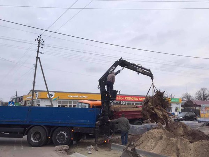 А саме було залучено техніку для викорчовування дерева біля магазину «Єва».
