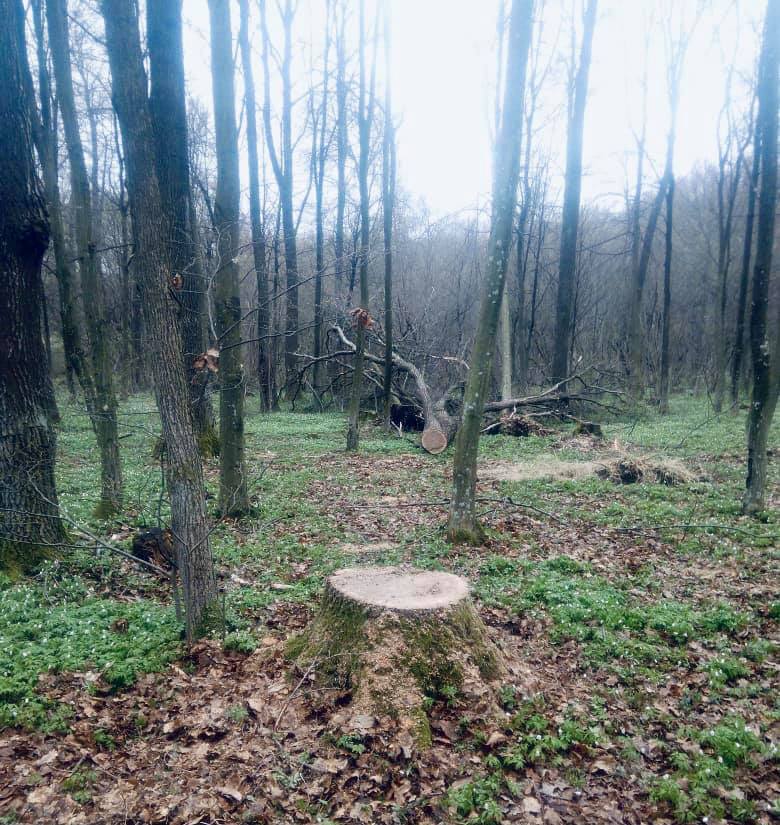 Слідчо-оперативна група, яка виїхала на місце події, виявила зрізані стовбури дуба діаметром 68 см., та граба діаметром 23 см.