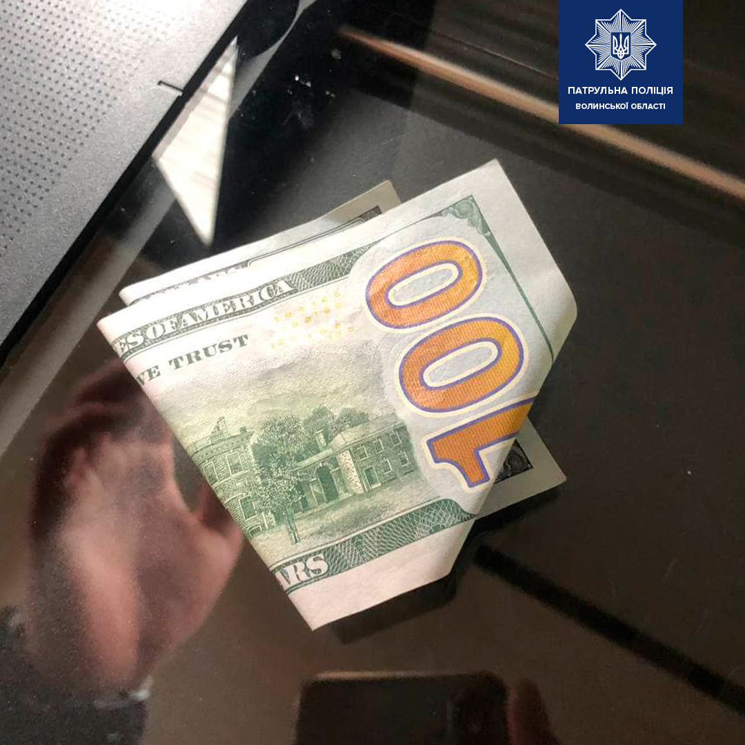 Під час складання адміністративних матеріалів, 50-річний чоловік, з метою уникнення адміністративної відповідальності, пропонував поліцейським неправомірну вигоду. Його неодноразово попереджали про кримінальну відповідальність, однак він продовжував пропонувати грошові кошти та надав 100 доларів США.