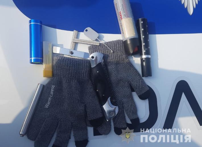 Оскільки зловмисники вже були в полі зору правоохоронців, оперативники їх затримали по гарячим слідам. У них були різноманітні відмички, рукавички та інші предмети, які можуть використовуватись при вчиненні майнових злочинів.