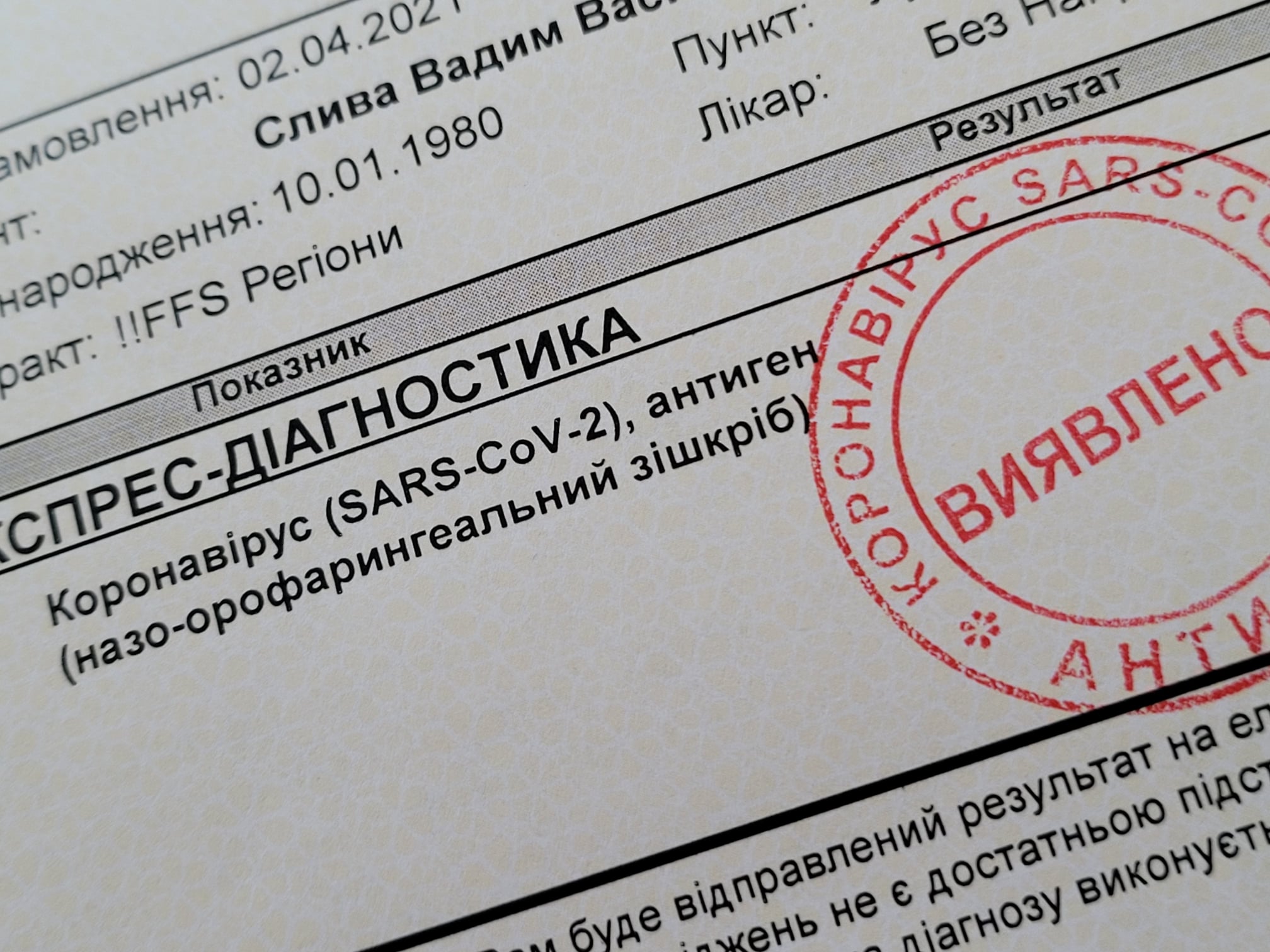 Чоловікові довелося звернутися до приватної клініки. Так він за 600 грн зробив експрес-тест, який виявився позитивним.