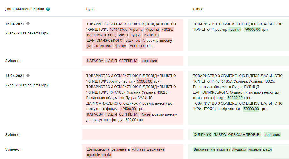А протягом 15-17 березня 2021 року підприємство перереєстрували в Луцьку за адресою: вулиця Даргомижського, 7.