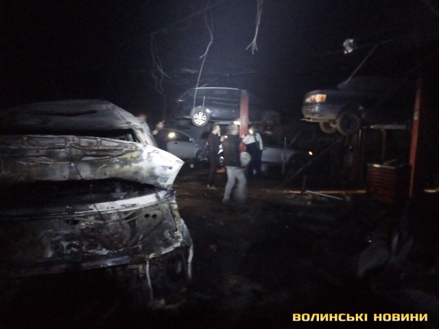 Щонайменше три автомобілі згоріли повністю під час пожежі, яка трапилася в боксі для ремонту авто в районі вулиці Львівської у Луцьку. Займання трапилося, ймовірно, через вибух газового балона.