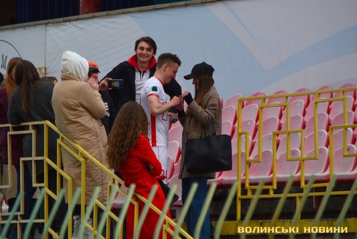 Позитиву після гри додав молодий футболіст «Волині» Олександр Климець. Він з’явився на полі з лави для запасних, а після фінального свистка піднявся на центральну трибуну, де в оточенні друзів зробив пропозицію своїй дівчині.