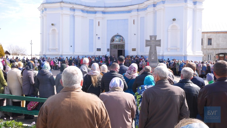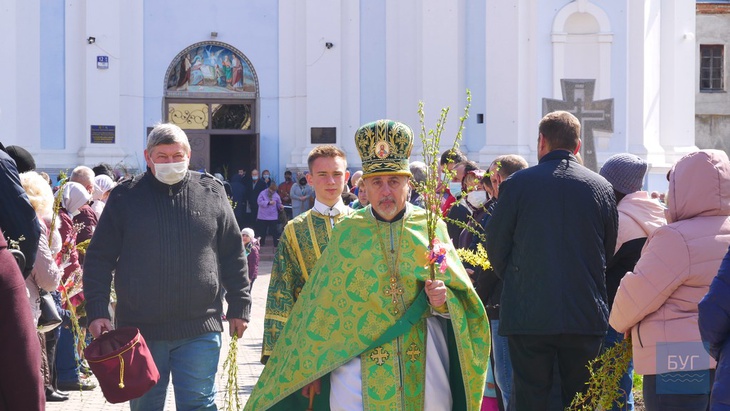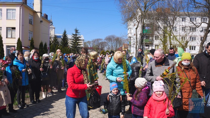 Велика черга охочих посвятити вербові гілки вистроїлася біля собору Різдва Христового, - пише Буг.