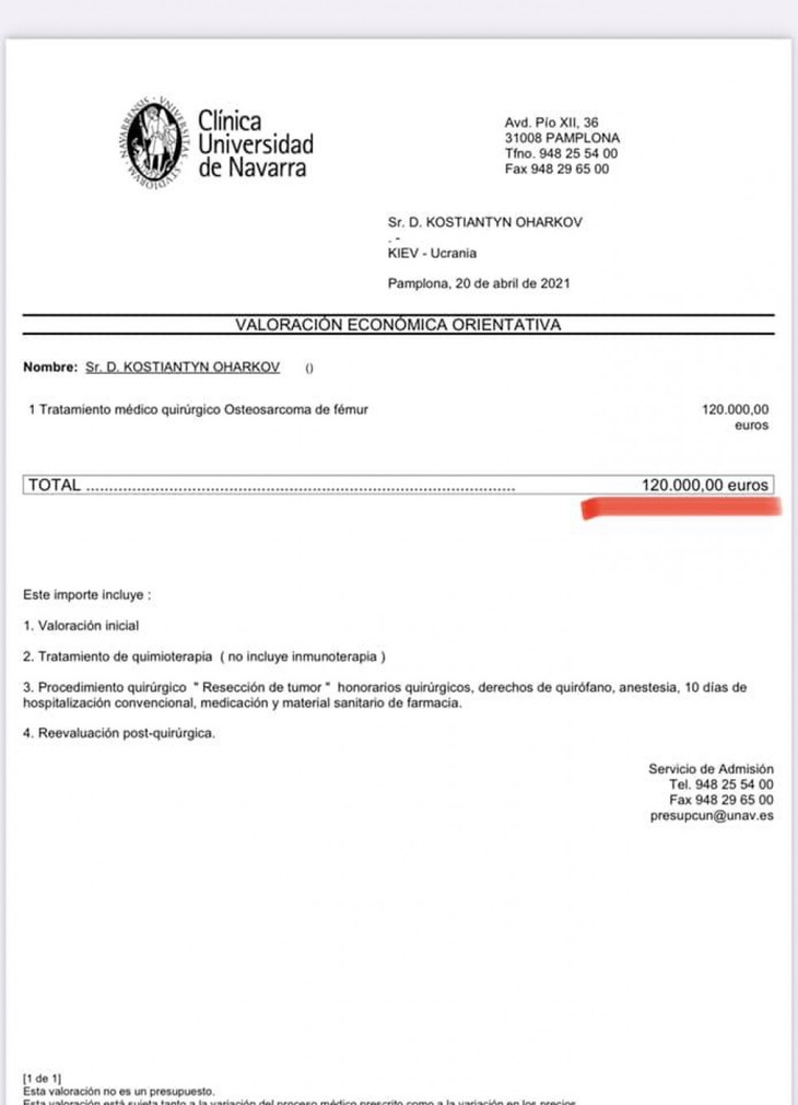 Сім'я Огаркових, яка зараз мешкає у Львові, розшукувала іноземні клініки, де лікують такі випадки онкології у дітей. Знайшли медзаклад в іспанському місті Наварра. Однак, вартість лікування занадто висока для молодого подружжя.
