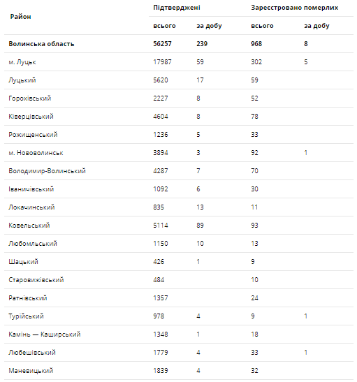 За останню добу на Волині зареєстровано 239 нових підтверджених випадків коронавірусної хвороби COVID-19 (з них дітей – 17, медпрацівників – 13). Одужало за добу – 631 особа, летальних випадків – 8.