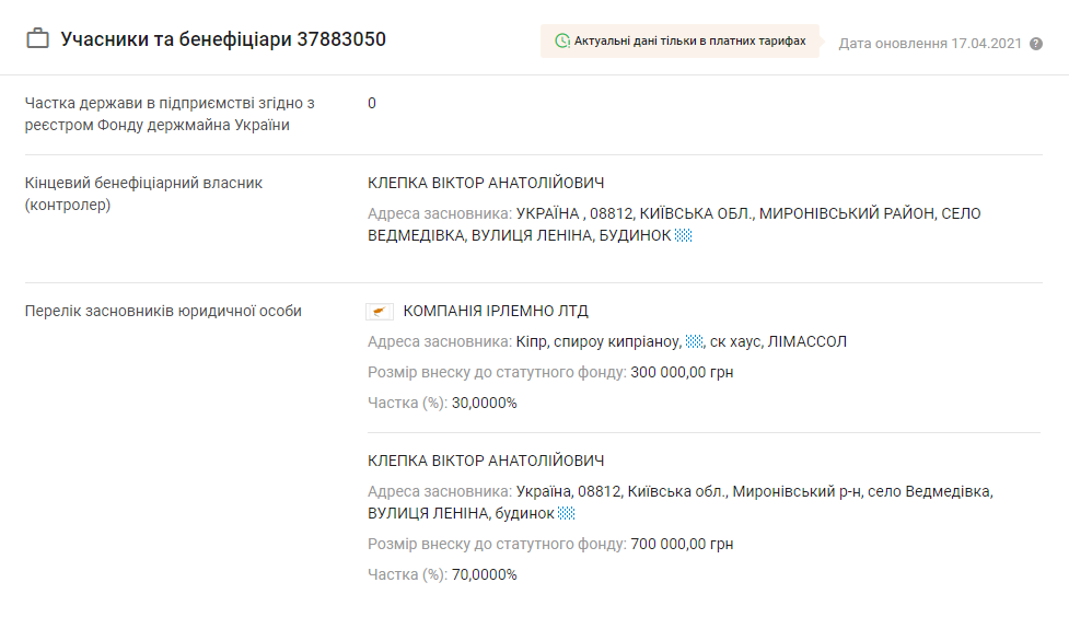 Тепер засновником, керівником і кінцевим бенефіціарним власником ТОВ «Надровидобування» значиться житель Київщини Віктор Анатолійович Клепка.