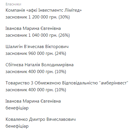 10-ма відсотками статутного капіталу володіє ТОВ «Амбер-інвест».