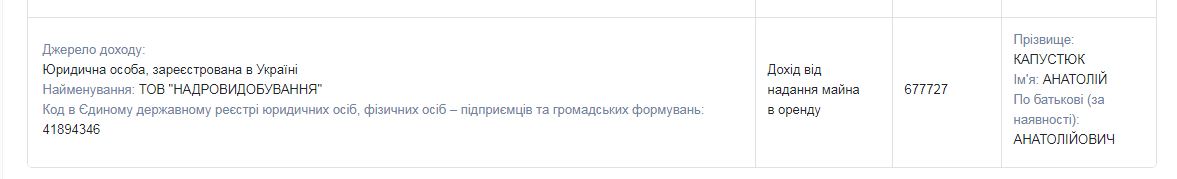 Серед бенефіціарних власників цієї ТОВки до вересня 2019-го був і Анатолій Капустюк.