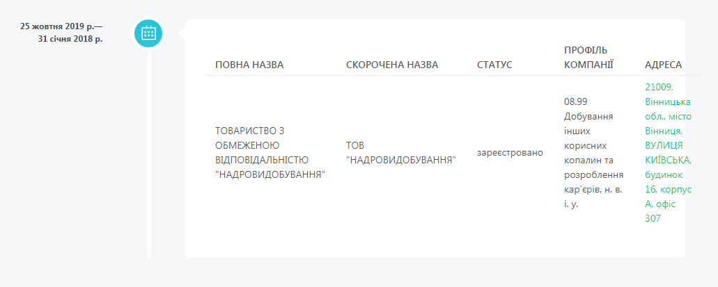 А через два роки, 31 січня 2018 року, створили приватне ТОВ «Надровидобування». Його засновником на той час був громадянин Польщі Василь Владика. Зареєстрували його у Вінниці.