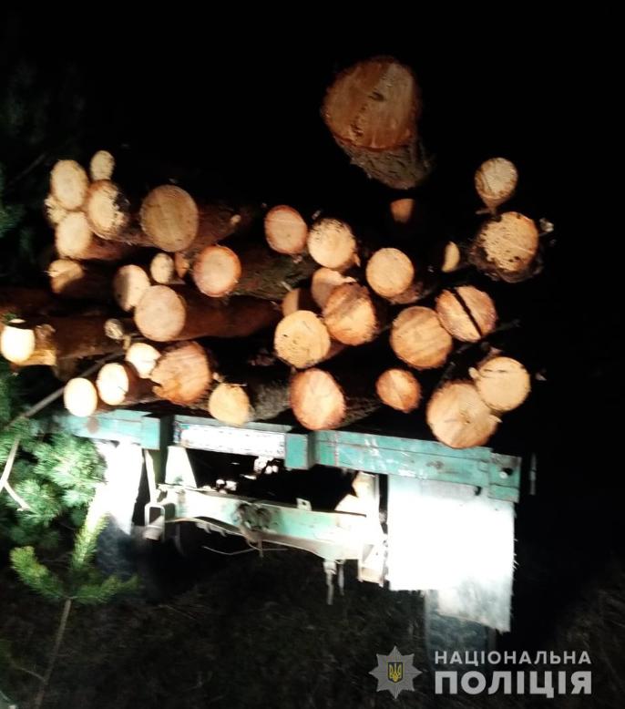 Окрім цього, під час огляду місцевості поліцейські виявили трактор МТЗ-80, на причіпі якого знаходилось 50 колод деревини.
