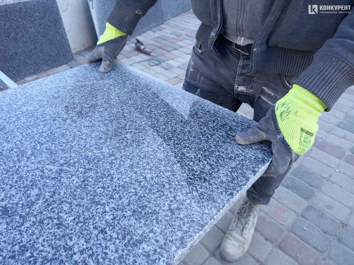 Світломузичний фонтан у Луцьку облицьовують чорними гранітними плитами.