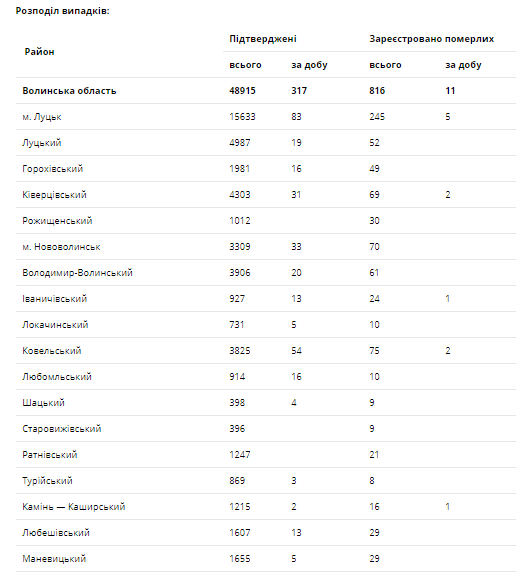 З початку пандемії COVID-19 уже забрав життя 816 волинян, серед них 24 медиків. За минулу добу померло 11 мешканців Волині, з них 5 – лучани.