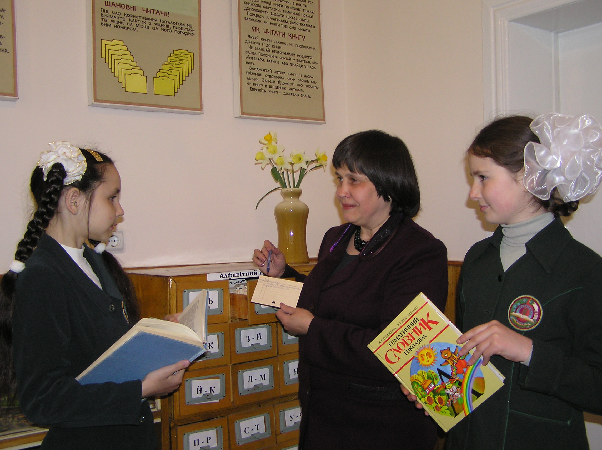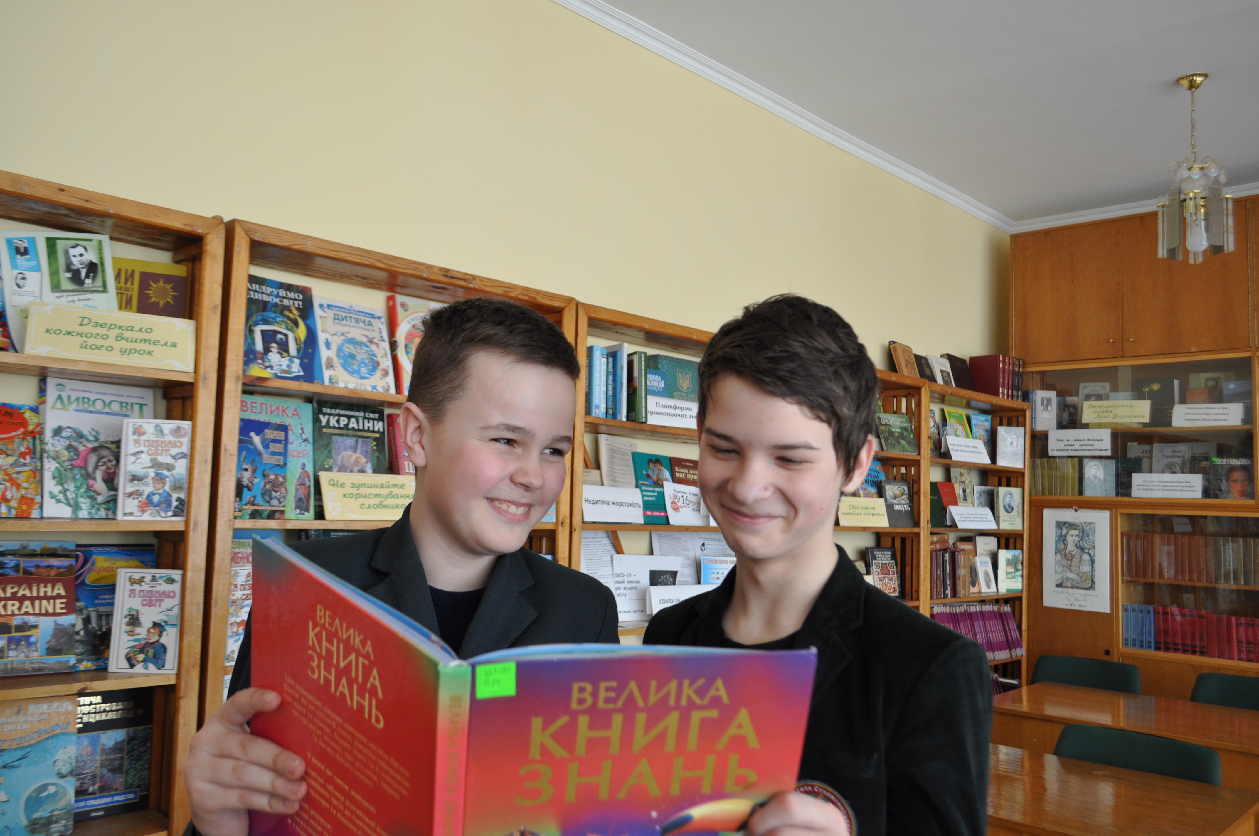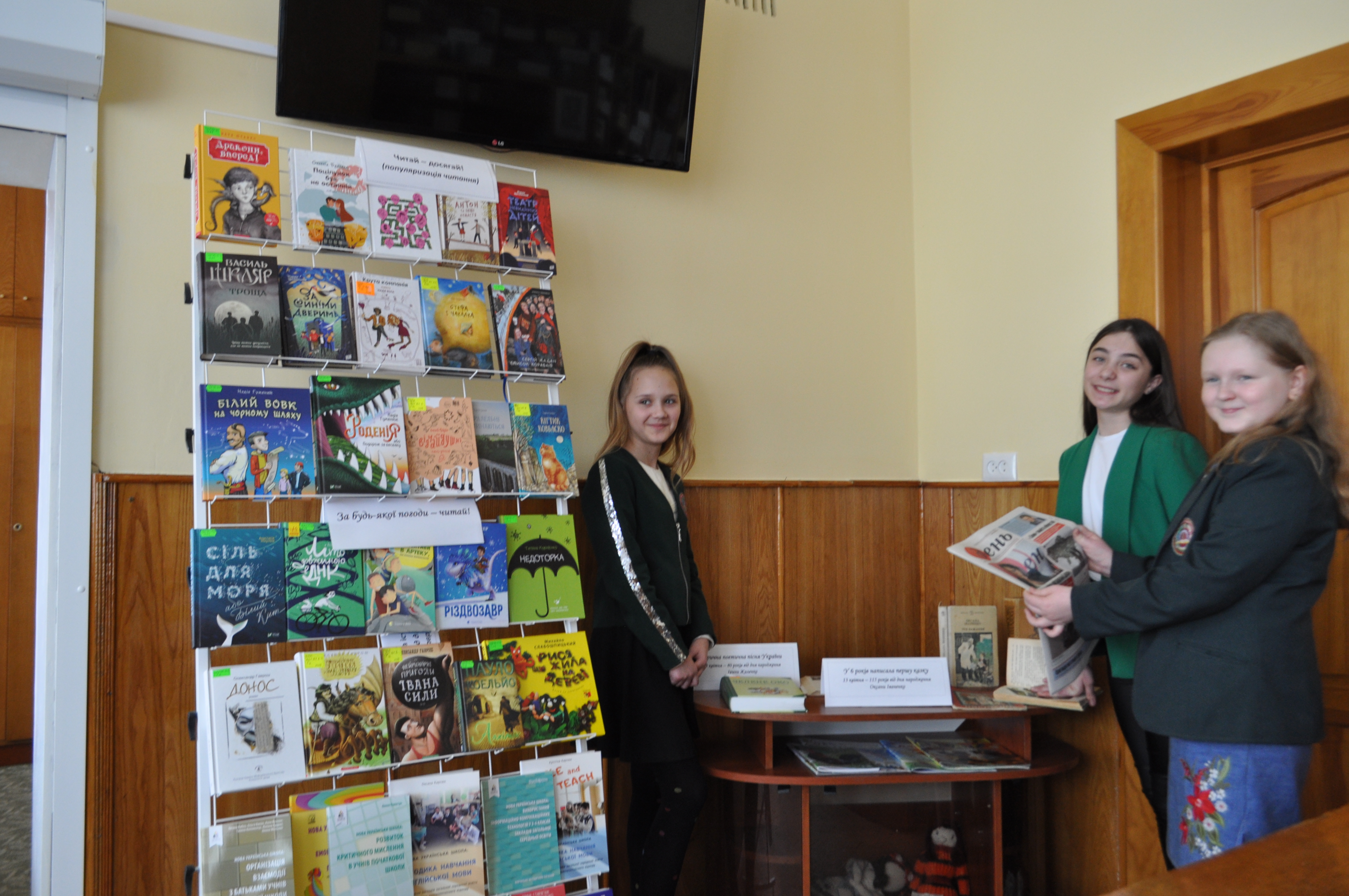 Учні 2-А (6 клас) гімназії Маргарита Барнаш, Єлизавета Іщук, Анастасія Івченко, Максим Костюк, Олексій Гнатюк зацікавились новою літературою, що поповнила фонд бібліотеки.