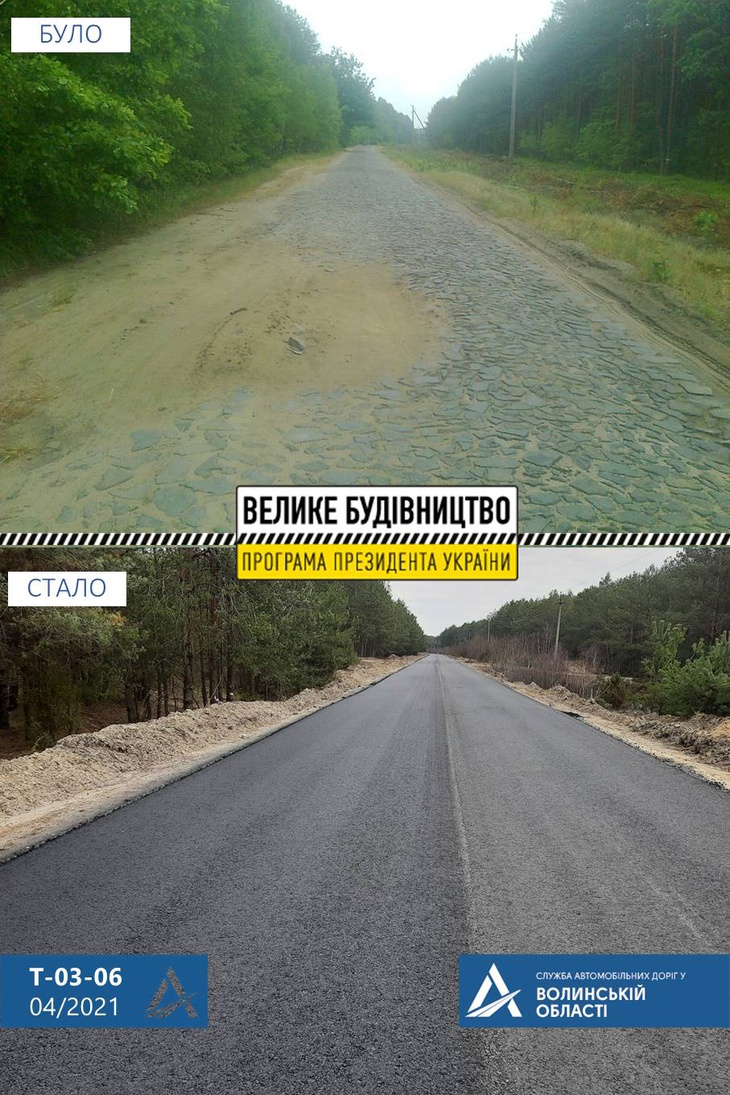 «Йдеться про територіальну дорогу Т-03-06 /Т-03-02/ – Шацьк – Вілиця – Прип'ять – Любохини – /Т-03-08/. На ділянці протяжністю понад 9 кілометрів, що пролягає між населеними пунктами Шацьк і Вілиця, влаштовано перший із двох запроєктованих шарів дорожнього покриття з асфальтобетонної суміші», - розповіли у Службі автомобільниї доріг Волинської області.