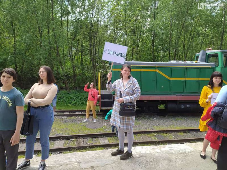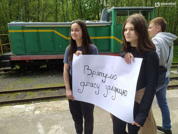 Захід анонсували на сторінці Луцької дитячої залізниці у Фейсбуку. Лучани прийшли з плакатами, написи на яких закликають зберегти її.