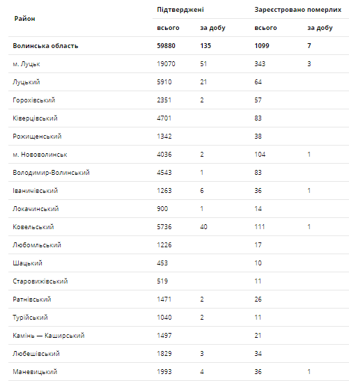 За останню добу на Волині зареєстровано 135 нових підтверджених випадків коронавірусної хвороби COVID-19 (з них дітей – 7, медпрацівників – 4). Найбільше інфікувань у Луцьку – 51, у Ковельському районі – 40.