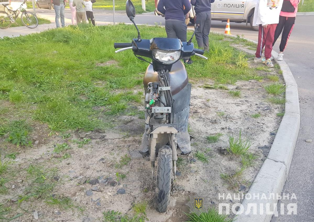 Внаслідок ДТП водій скутера та його 17-річний пасажир отримали тілесні ушкодження. Їх доставили у лікарню.