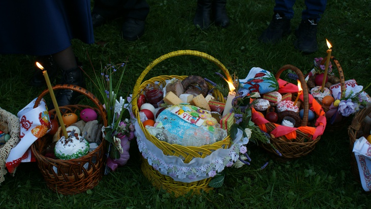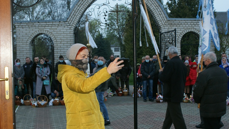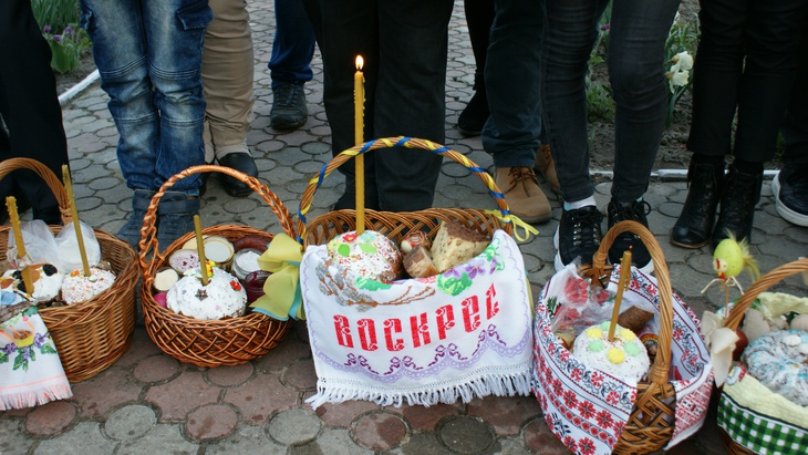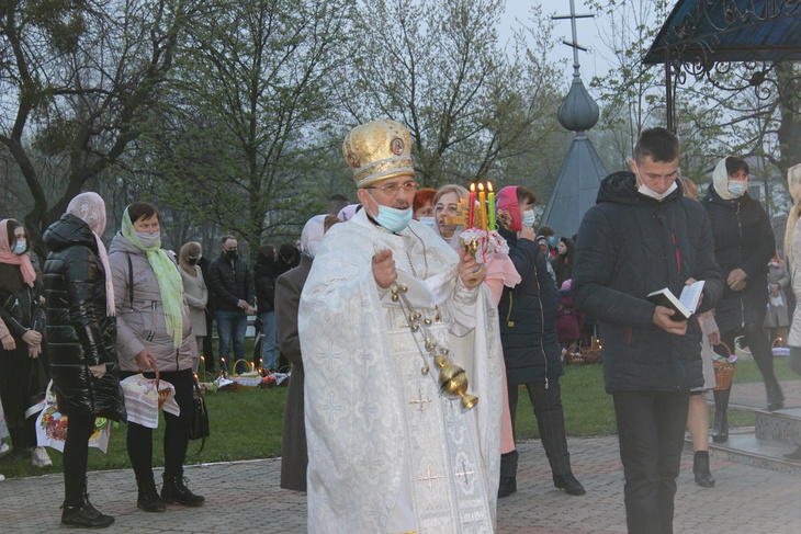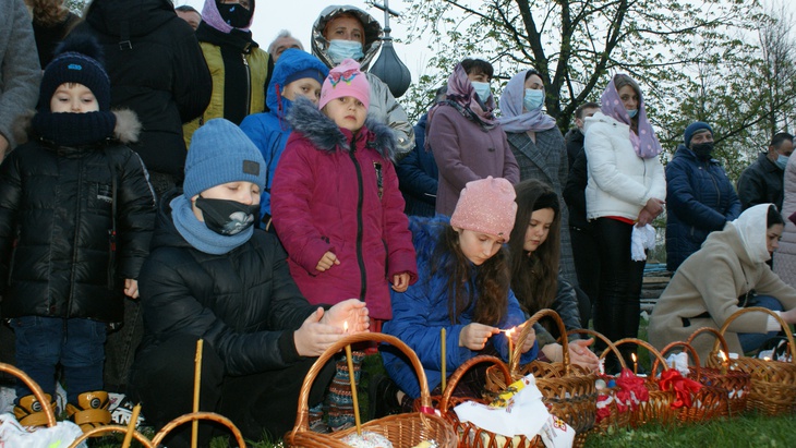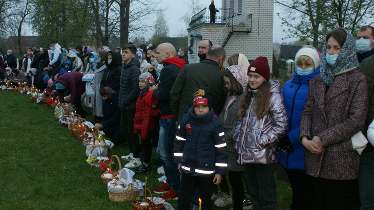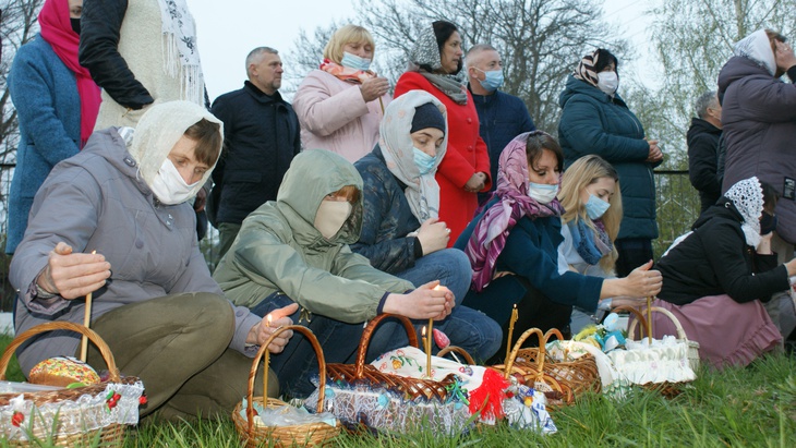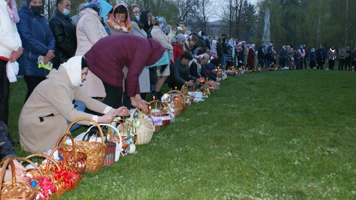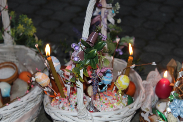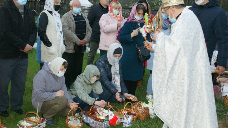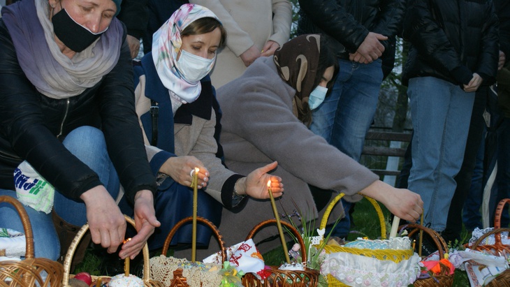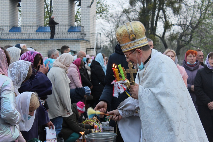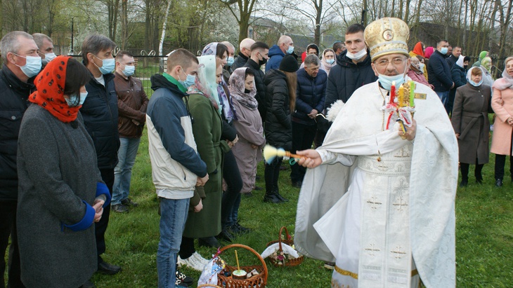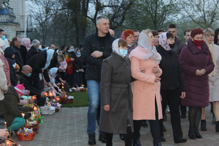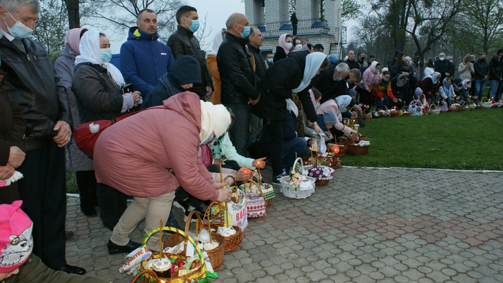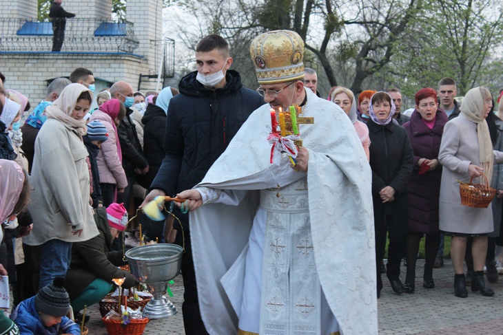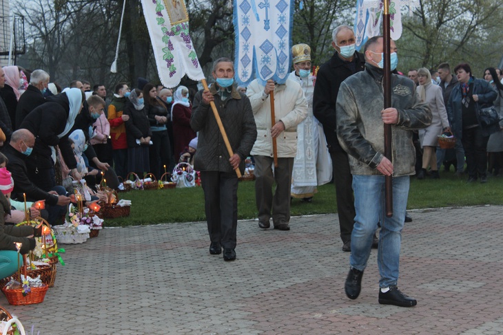 Дорослі і діти, бабусі і дідусі – тут можна було зустріти людей різного віку. Кожен з них «озброївшись» масками приніс до храму кошик з традиційним «набором». Для освячення брали не тільки паску та крашанки. У кошиках прихожан - і ковбаска, м’ясо, масло, сирна бабка тощо.