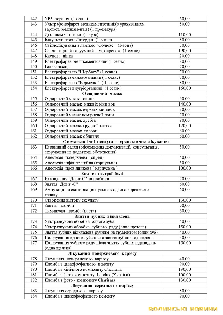 «Це тривалий, динамічний процес, кожен лікувальний заклад готує поступово перелік платних послуг, якщо вони бачать, що є нагальна потреба їх затверджувати, що є попит на ці послуги. Заклади подають розрахунки в управління охорони здоров’я, де їх перевіряють, а медична комісія затверджує», – зауважила вона.