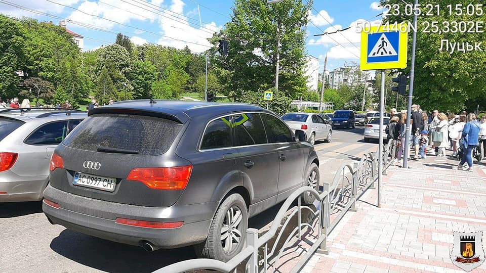 Вчора, 3 травня, камери відеоспостереження Центру безпеки міста Луцьк зафіксували, як водії автомобілів VOLKSWAGEN та AUDI порушили правила зупинки та стоянки, припаркувавши свої авто ближче 10 метрів до пішохідного переходу по вулиці Глушець.