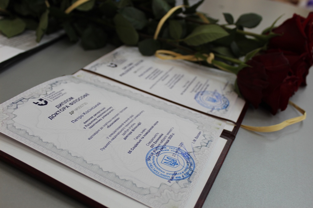 Асистент кафедри економіки Луцького НТУ Петро Косінський отримав диплом доктора філософії.