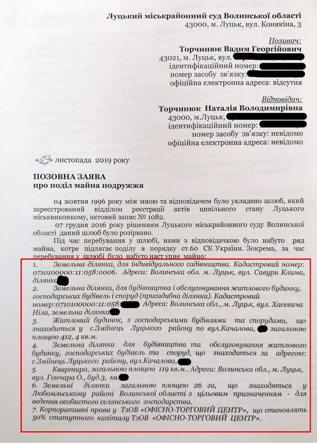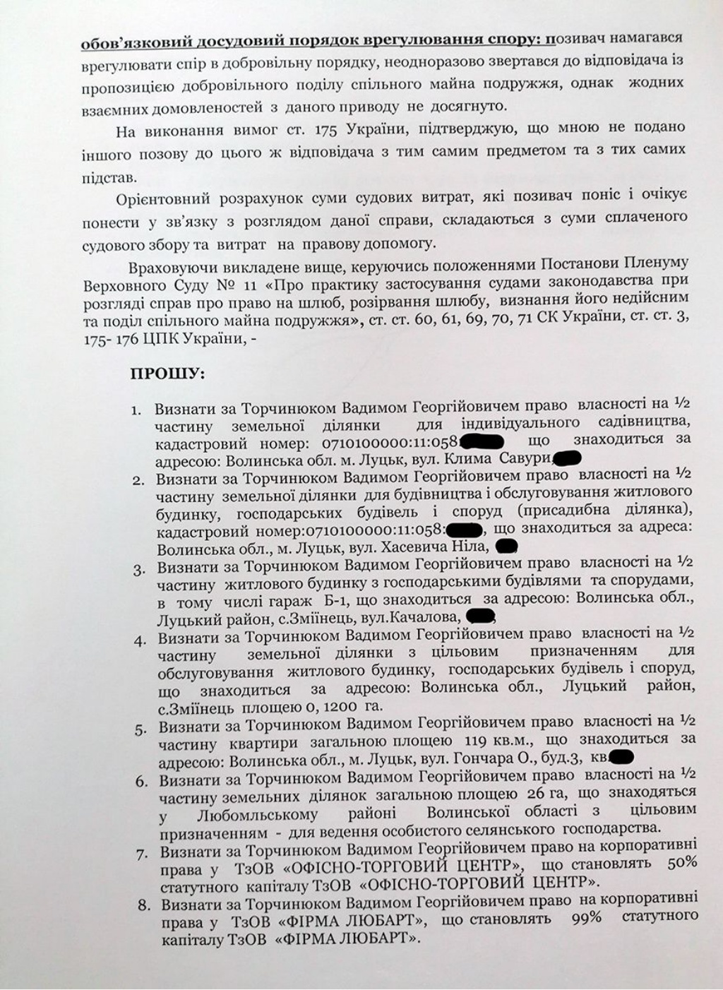 Вадим Торчинюк хоче поділити навпіл зареєстровану на дружину нерухомість, а це: