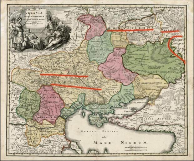 Історики оприлюднили у мережі старовинну карту, яка доводить, що Україна сприймалася у світі як самобутня країна ще на початку XVIII століття. Натомість сучасна Росія тоді навіть не носила свою нинішню назву.
