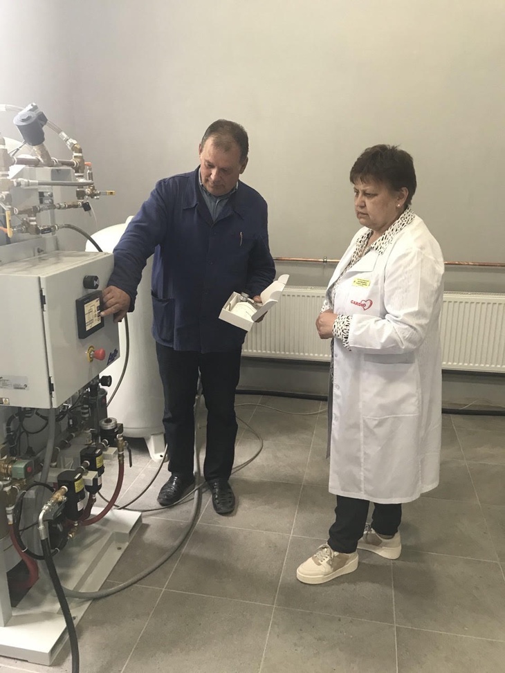 А ось днями тут введено в експлуатацію нову кисневу станцію, що може одночасно забезпечити киснем 38 пацієнтів. Протяжність трубопроводу нової мережевої установки становить 400 метрів. Це дозволяє подавати кисень хворим на COVID-19 в реанімаційному, приймальному відділеннях, інфекції та травматології.