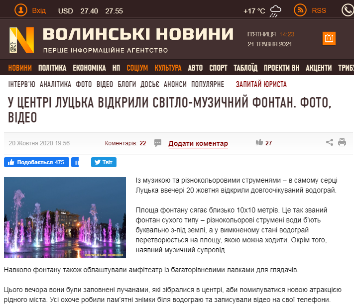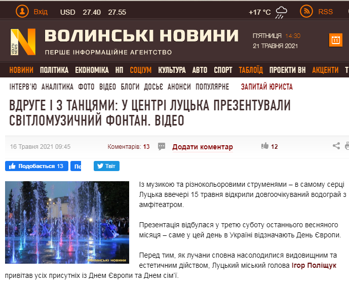 Міська влада Луцька задля власного піару вже витратила майже 13 мільйонів гривень на будівництво на Театральному майдані світломузичного фонтану, який двічі відкривали: першого разу – недороблений – перед місцевими виборами 2020 року, а другого – в травні 2021-го – до Дня Європи в Україні.