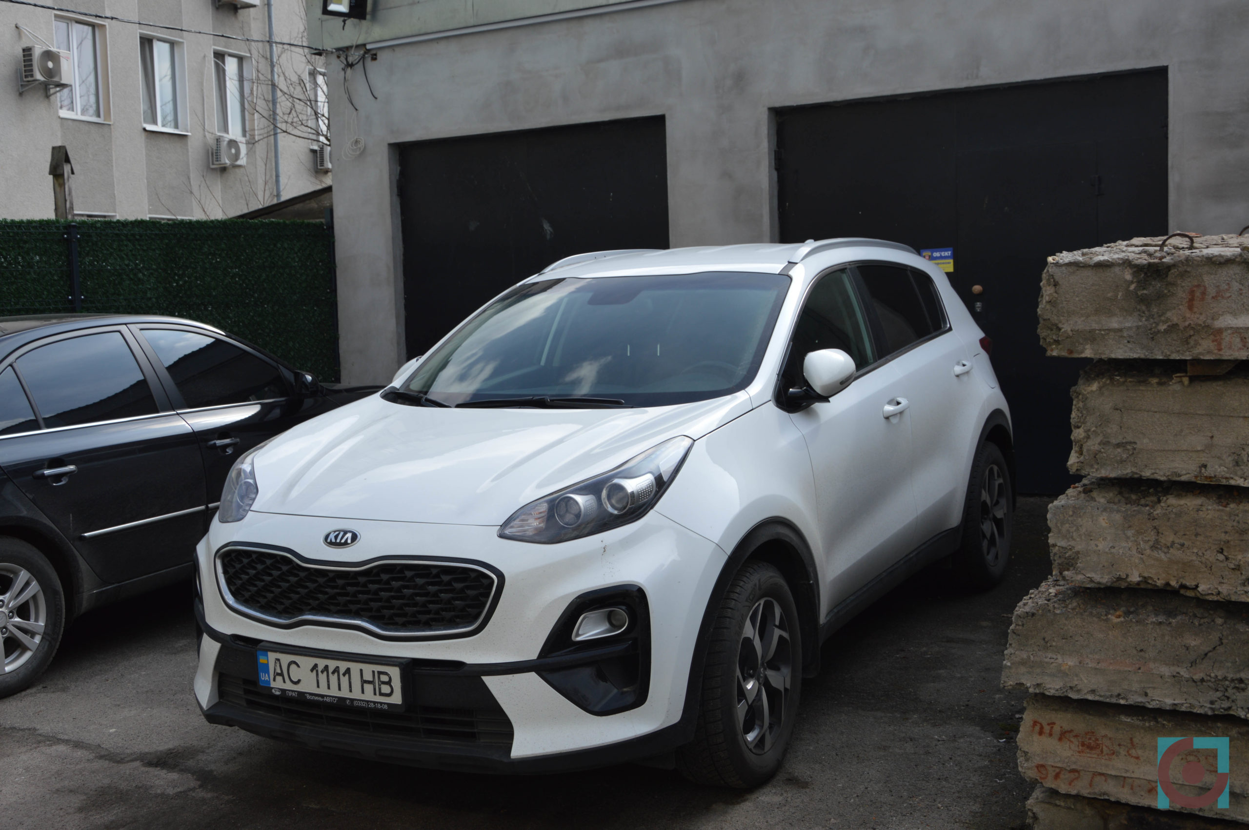 Далі голова райради показує комунальний автопарк, авто, які нещодавно успадкували від колишніх районів і, зрештою, власну машину. Зауважуємо особливий номерний знак з чотирма однаковими цифрами.