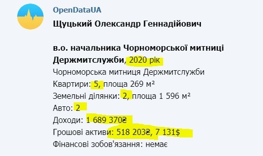 Ще в 2017 році тодішній заступник начальника Волинської митниці, начальник митного поста «Луцьк» Олександр Щуцький погодився дати інтерв'ю телеканалу «Громадське. Волинь». Як він тоді зазначив: «Все, що я маю, я придбав не на державній службі». Ну-ну…