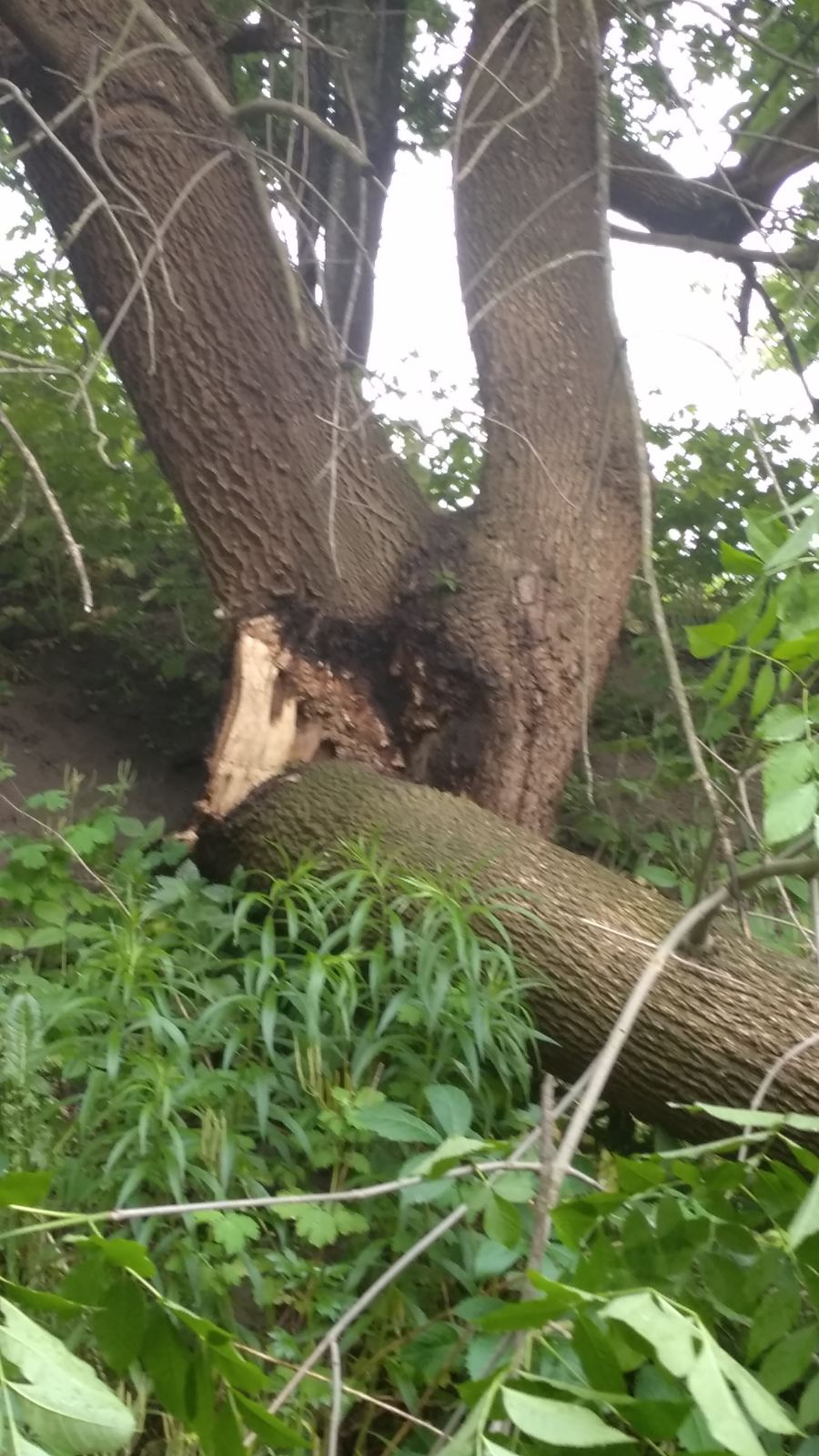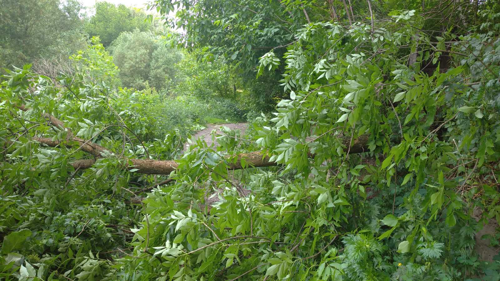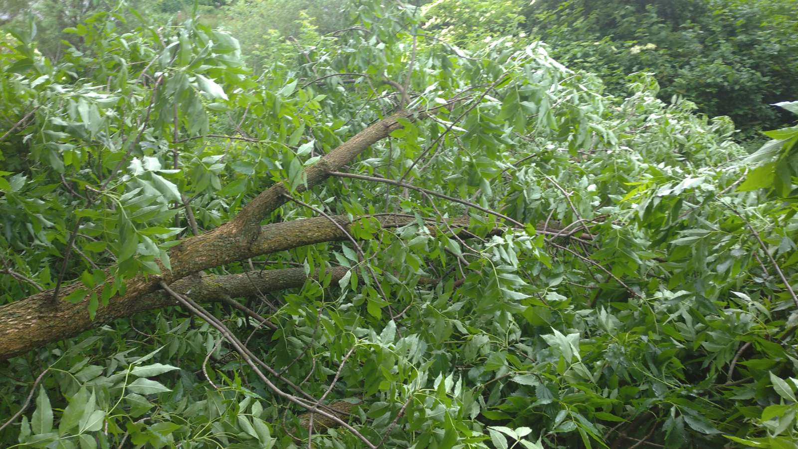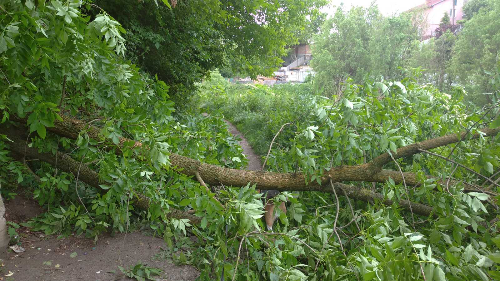 Під час нічної грози із 12 на 13 червня від сильних поривів вітру впало дерево поблизу дитячої залізниці в Луцьку.