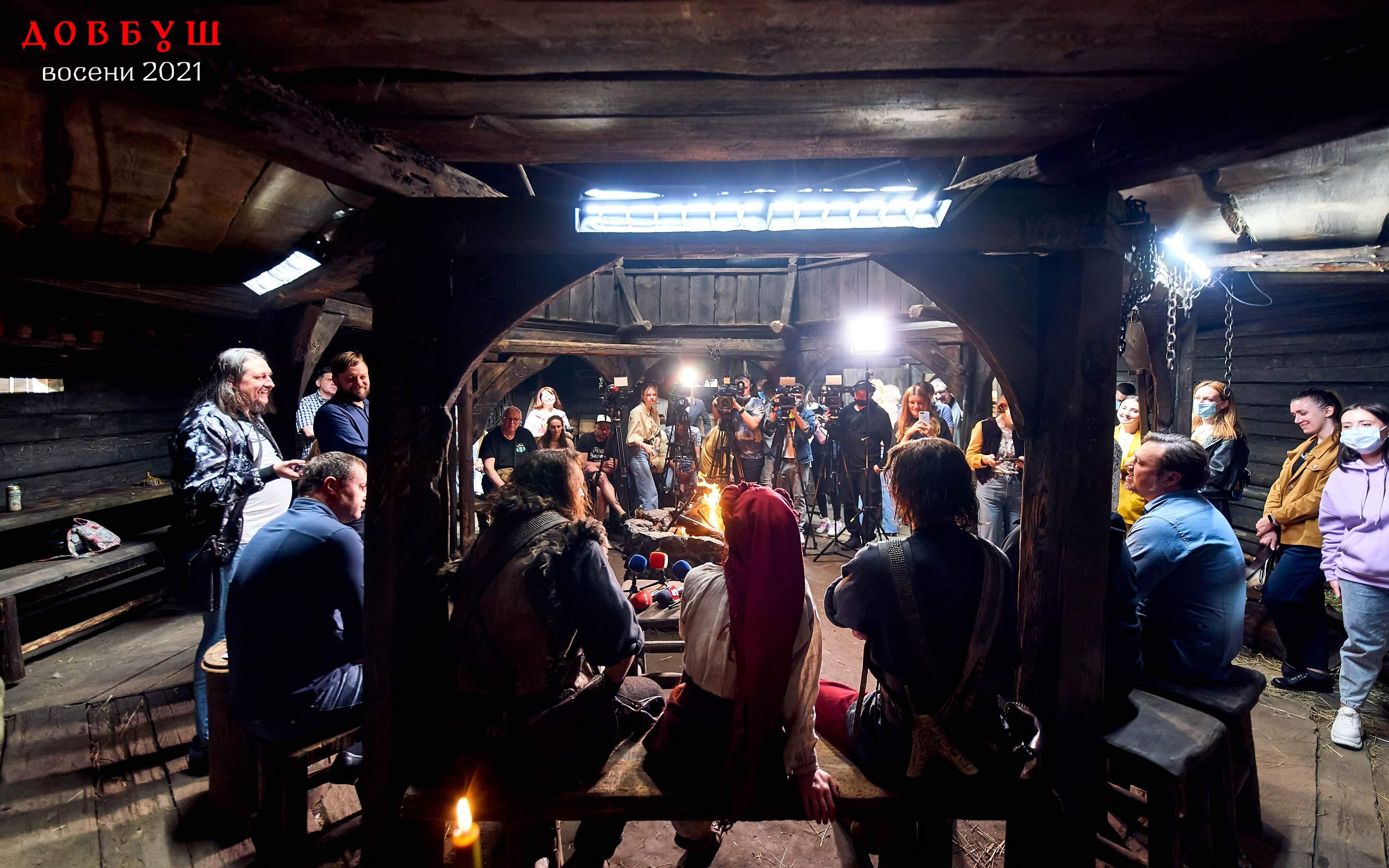 8 червня на одній із багатьох локацій знімального процесу, а саме на кіностудії імені О. Довженка, відбувся пресзахід за участю команди творців фільму «Довбуш», який знімає режисер з Луцька Олесь Санін.