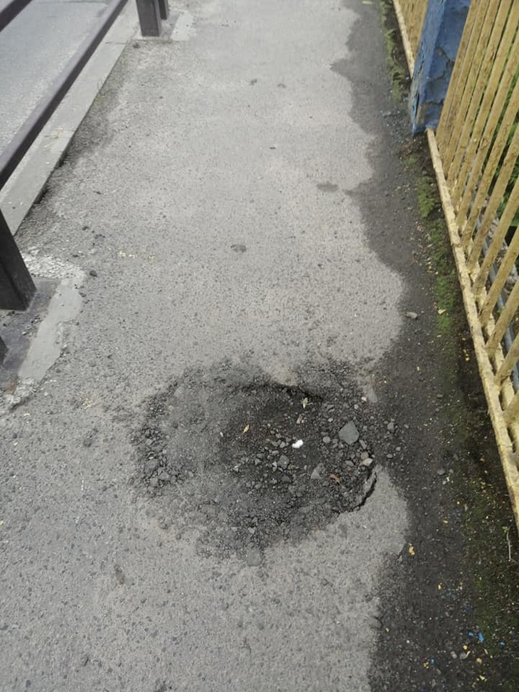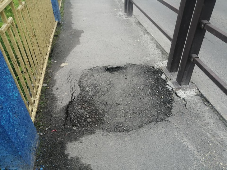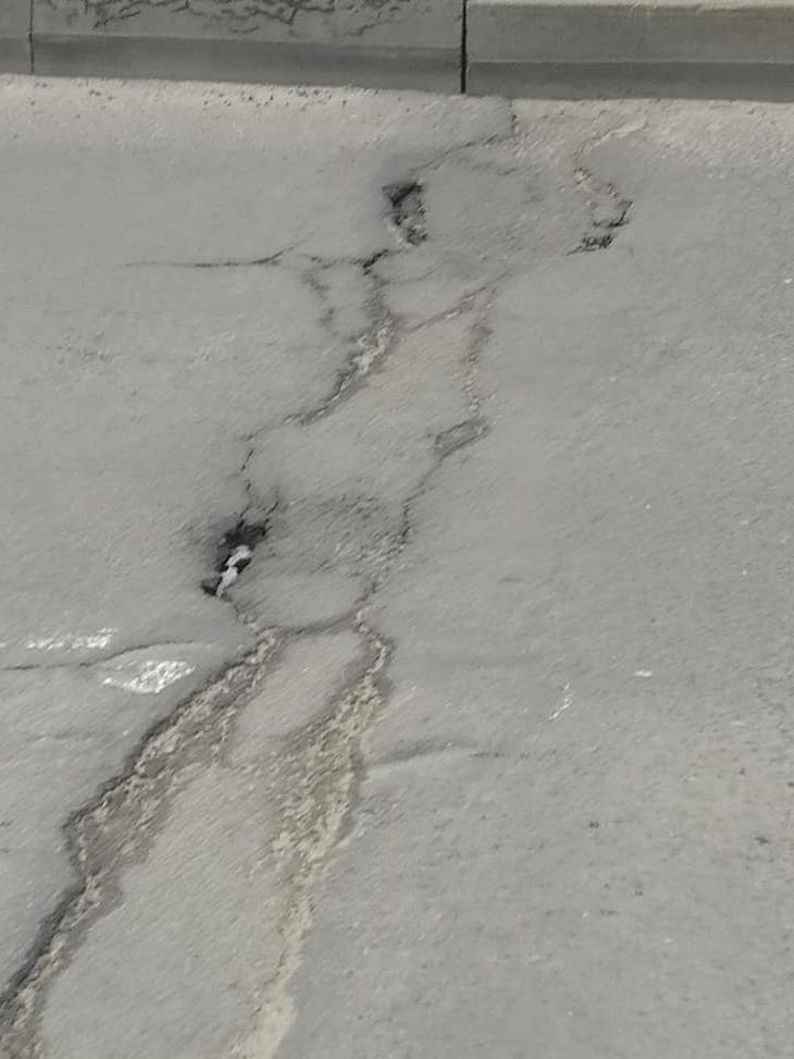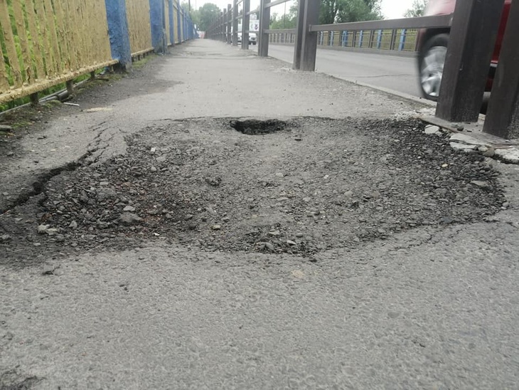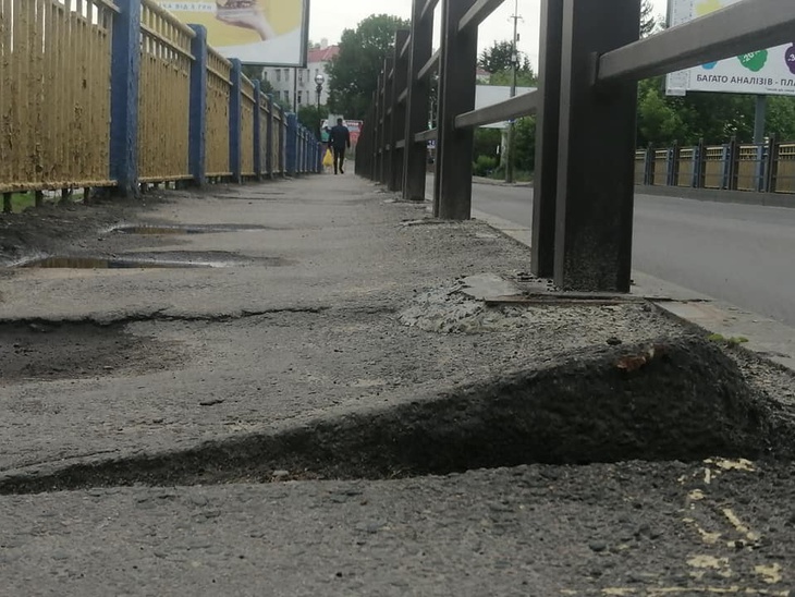 Микола Граб пише, що два дні тому на мосту залатали ями, однак, за його спостереженнями, весь асфальт осипався під міст, а відтак утворилися нові тріщини.