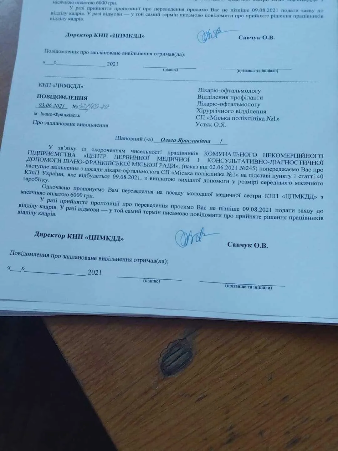 І така ситуація в багатьох регіонах країни. Наприклад, у міській лікарні №1 Івано-Франківська лікарці-офтальмологині хірургічного відділення повідомили про скорочення і запропонували перейти на посаду медсестри з окладом у 6 тисяч гривень.