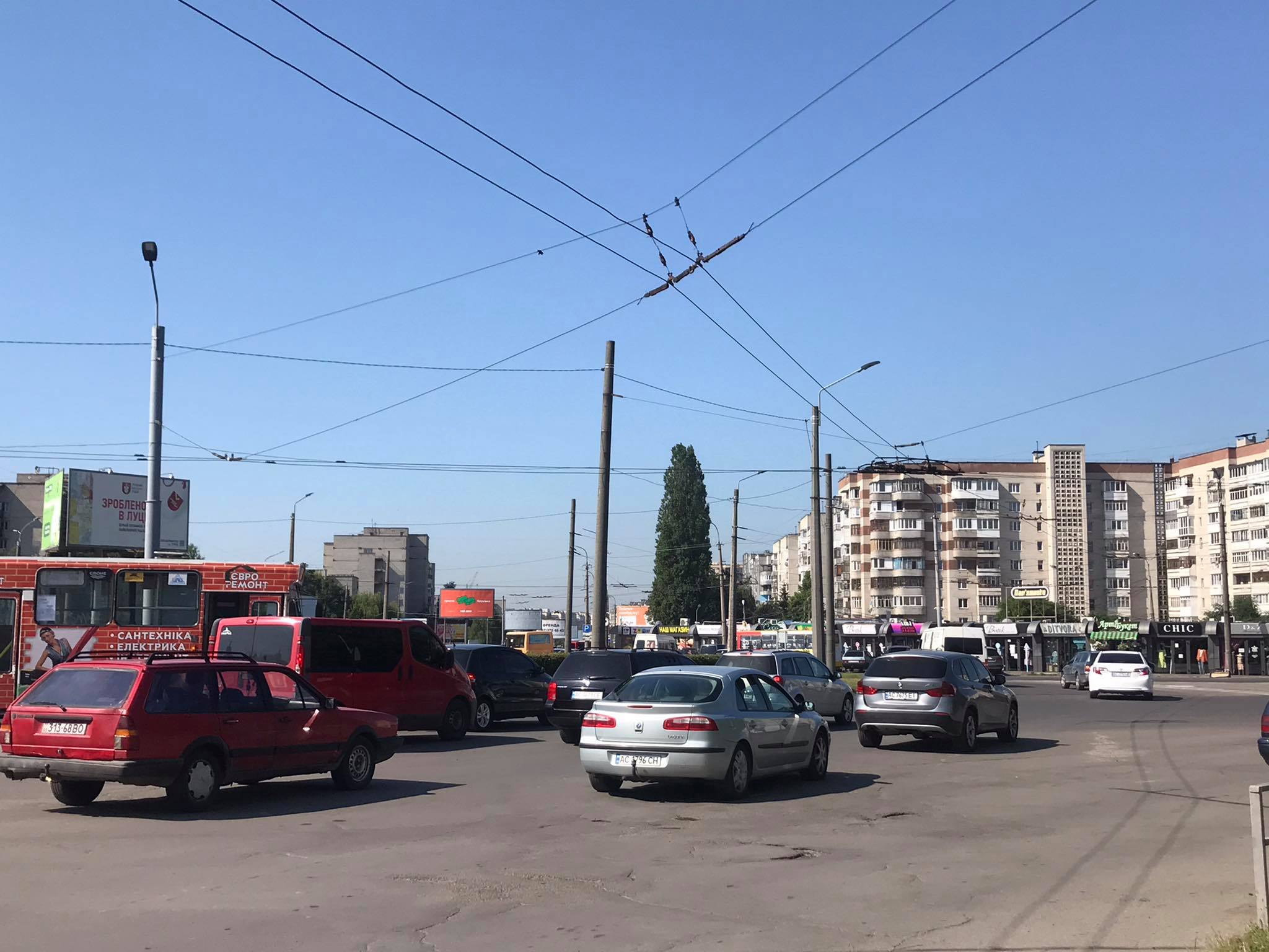 У Луцьку на кільці вулиць Єршова, Гордіюк та проспектів Відродження і Соборності обірвалася контактна мережа. Через раптову зупинку руху тролейбусів утворився затор.