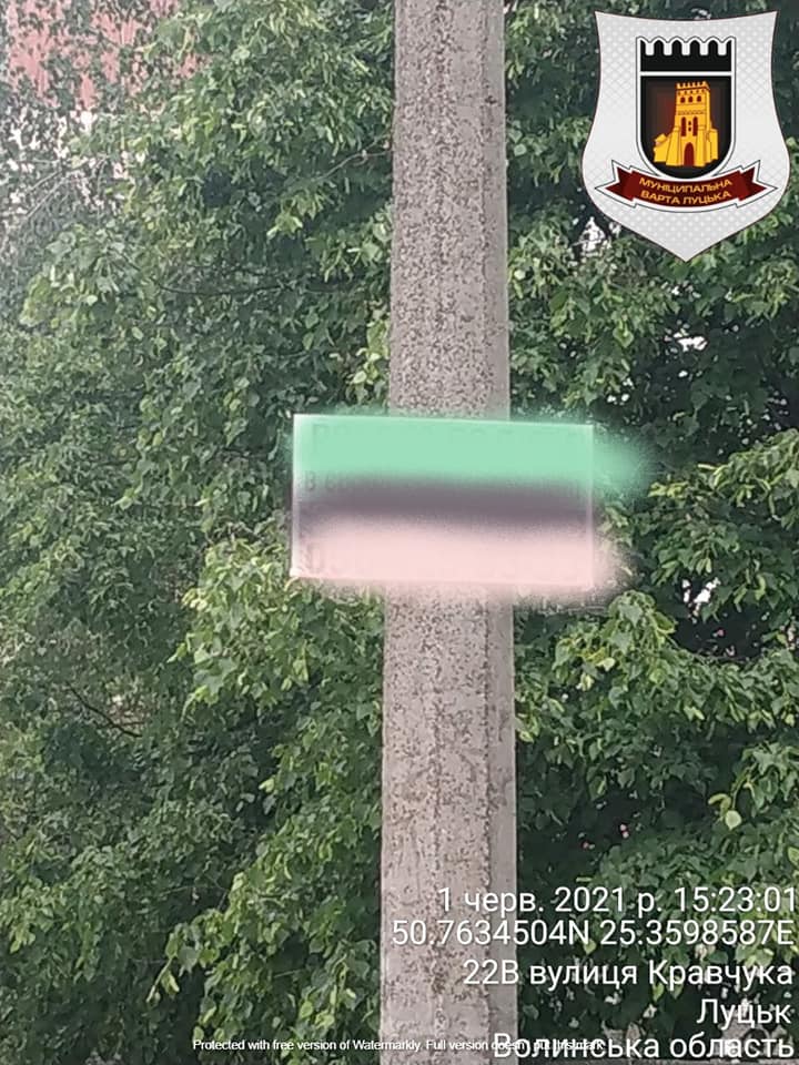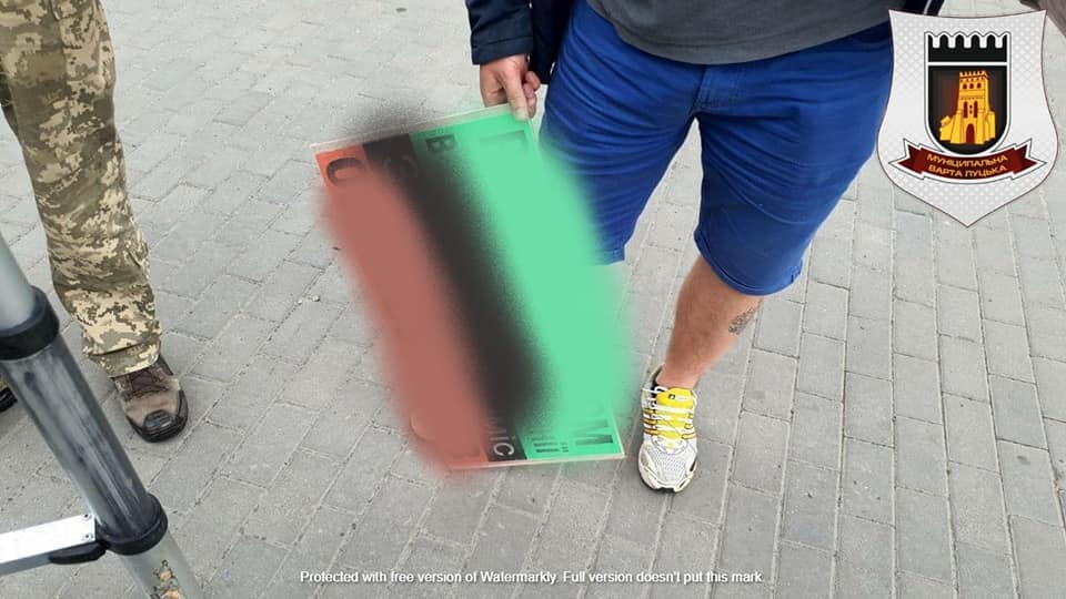 За порушення Правил благоустрою міста Луцька, ст. 152 КУпАП, на керівника однієї з фірм міста Києва, який безпосередньо розміщував рекламі таблички в місті Луцьку, склали протокол про адміністративне правопорушення та видали припис на очищення електроопор від реклами.