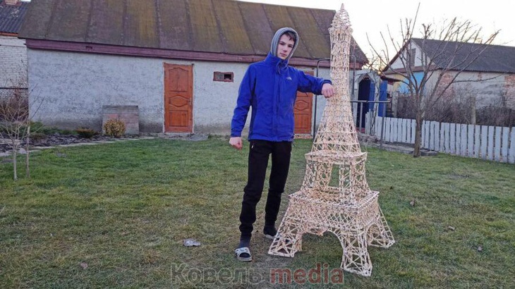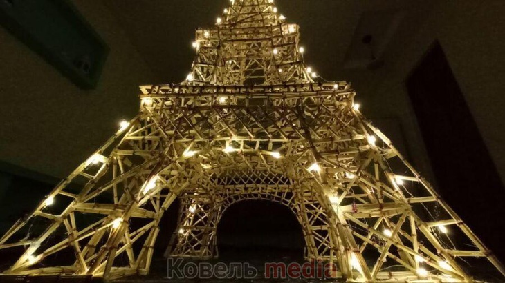 Пліт – далеко не єдине творіння Артема. Раніше хлопець змайстрував копію Ейфелевої вежі із сірників – вищу за самого себе. Він навіть подбав про ілюмінацію – тож вежа сяє так само неймовірно, як і справжня.